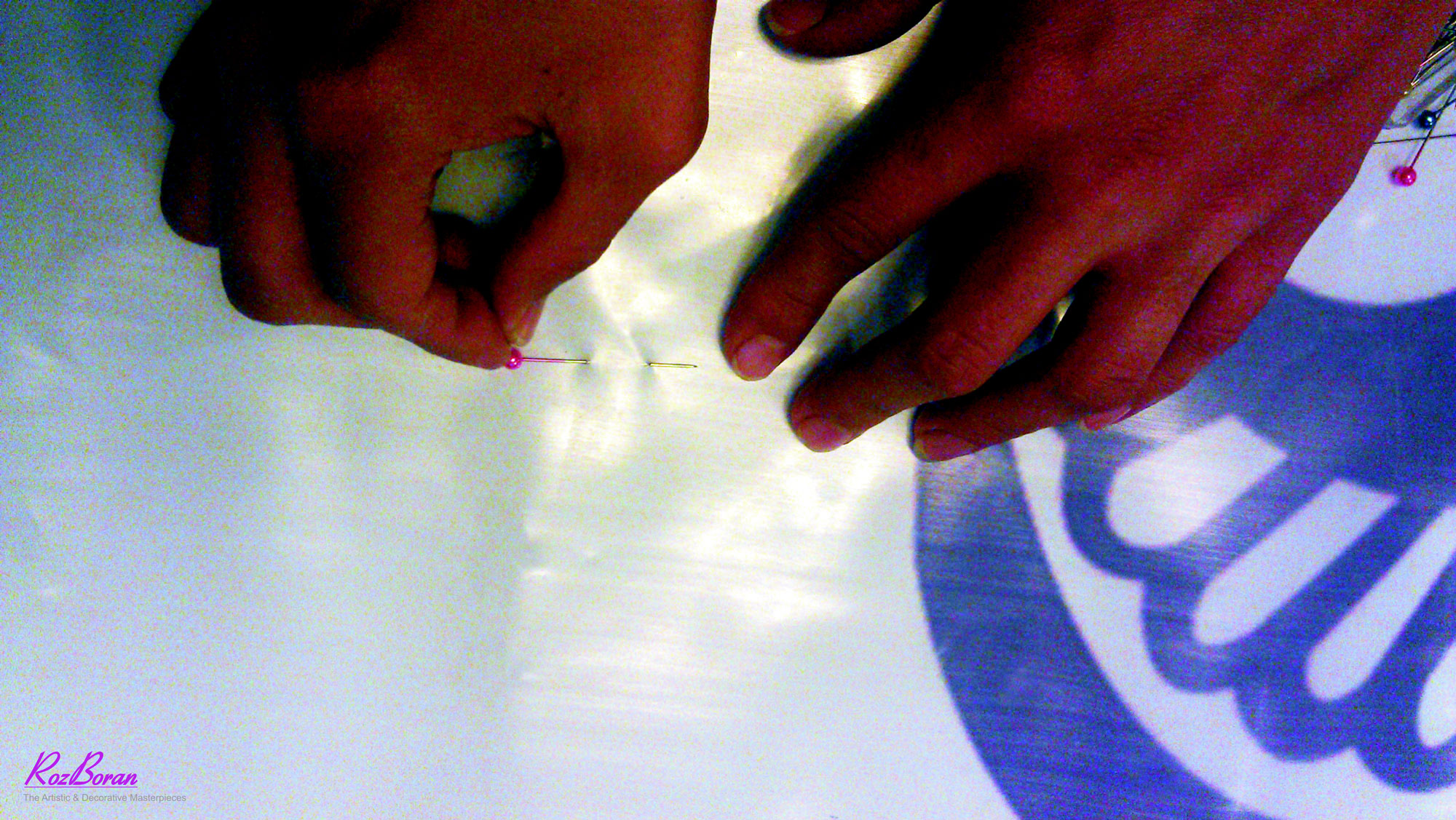 سوزن های ته گرد راحت ترین وسیله برای نصب پلاستیک به روی الگوست.می توان از چسب نواری یا منگنه هم استفاده نمود.